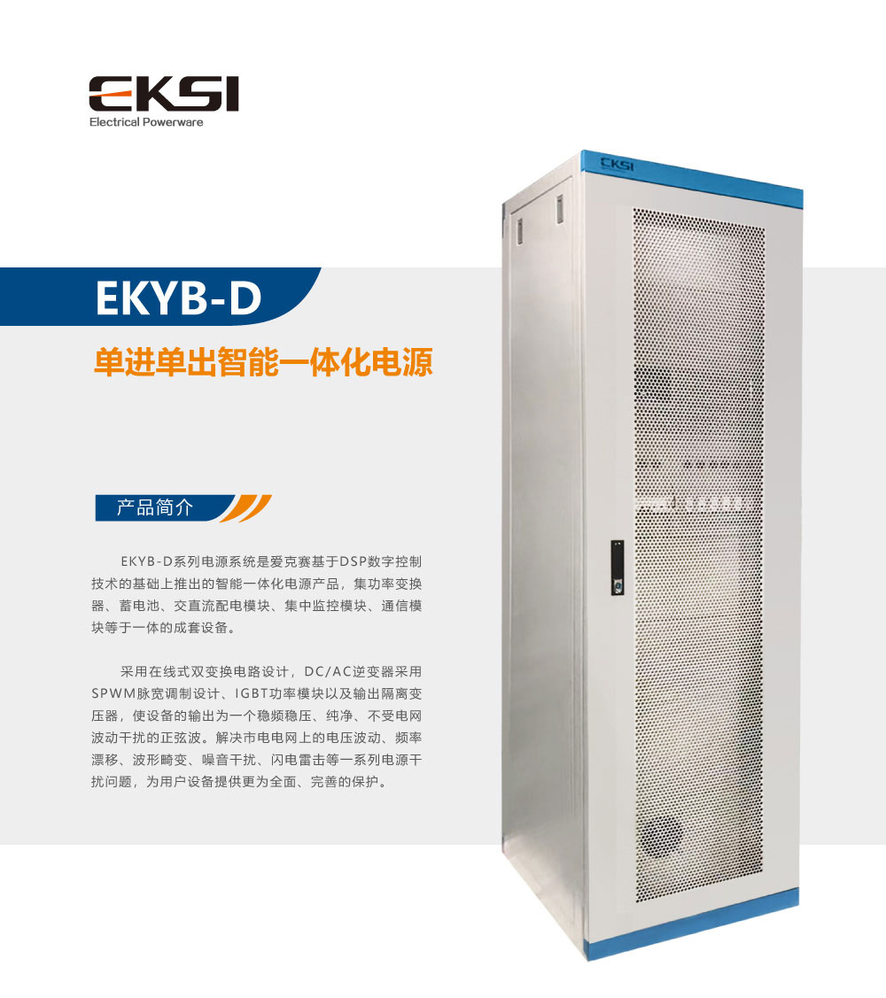 EKYB-D系列電源是單相小功率一體化電源產(chǎn)品,愛克賽基于DSP數(shù)字控制技術(shù)有基礎(chǔ)上推出的智能一體化電源產(chǎn)品,集成了功率變換器、蓄電池、交直流配電模塊、集中監(jiān)控模塊、通信模塊于一體的成套設備。